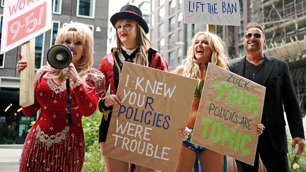 Tribute acts took to the streets outside Meta's London headquarters to stage a protest after their Facebook and Instagram profiles were deleted due to the platforms' rules against impersonation. Among the protesters were tribute acts impersonating Dolly Parton, Freddie Mercury, Adele, Britney Spears, Taylor Swift, and George Michael. They argued that these actions were unfair and jeopardized their livelihoods.