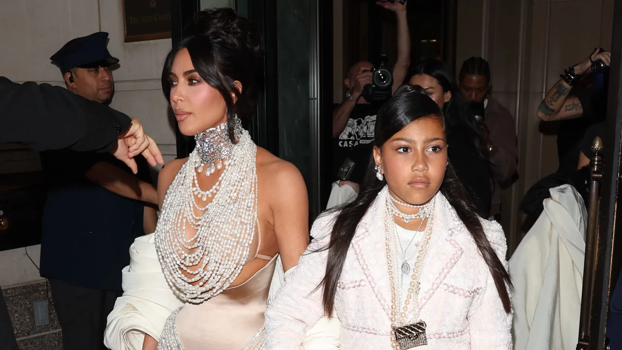 The next day, North and Kardashian sat in the front row at the Jean Paul Gaultier show, wearing coordinating pinstriped ensembles. North wore a dark vest and pleated skirt on top of a white button-up shirt, while the SKKN by Kim founder wore a skintight dress with a nude bodice. The outfit was a tribute to a design Madonna wore in 1992 that exposed her breasts.