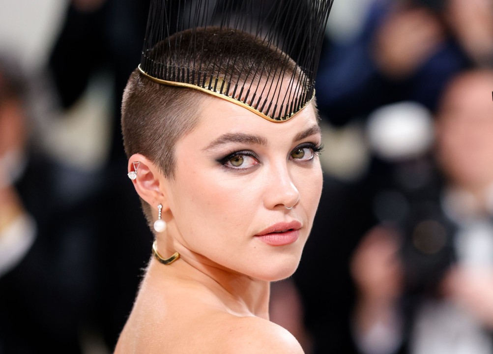Florence Pugh has made a bold entrance at the Met Gala 2023 by shaving her head. The 27-year-old actress donned a dramatic black and white Valentino gown with a lengthy train for her very first appearance at the prestigious event. The gown featured a plunging neckline with black bow detail on the white bodice. However, the real highlight of her look was her shaved head, which she accessorized with a feathered headpiece.