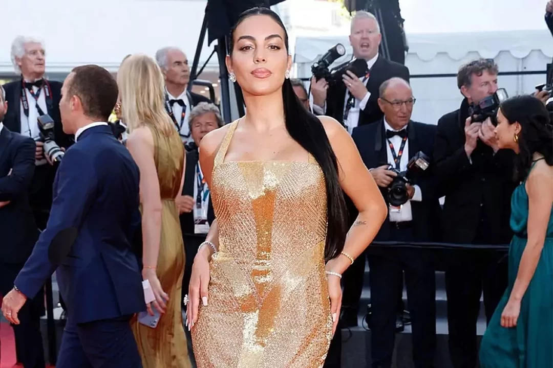 Georgina Rodriguez made a captivating appearance at the Cannes Film Festival, leaving everyone in awe. Her stunning ensemble was both glamorous and mesmerizing, effortlessly drawing the gaze of all the attendees. The fishnet-style dress with a mermaid cut adorned with golden-toned stones beautifully highlighted Georgina's presence at this esteemed event held in France.